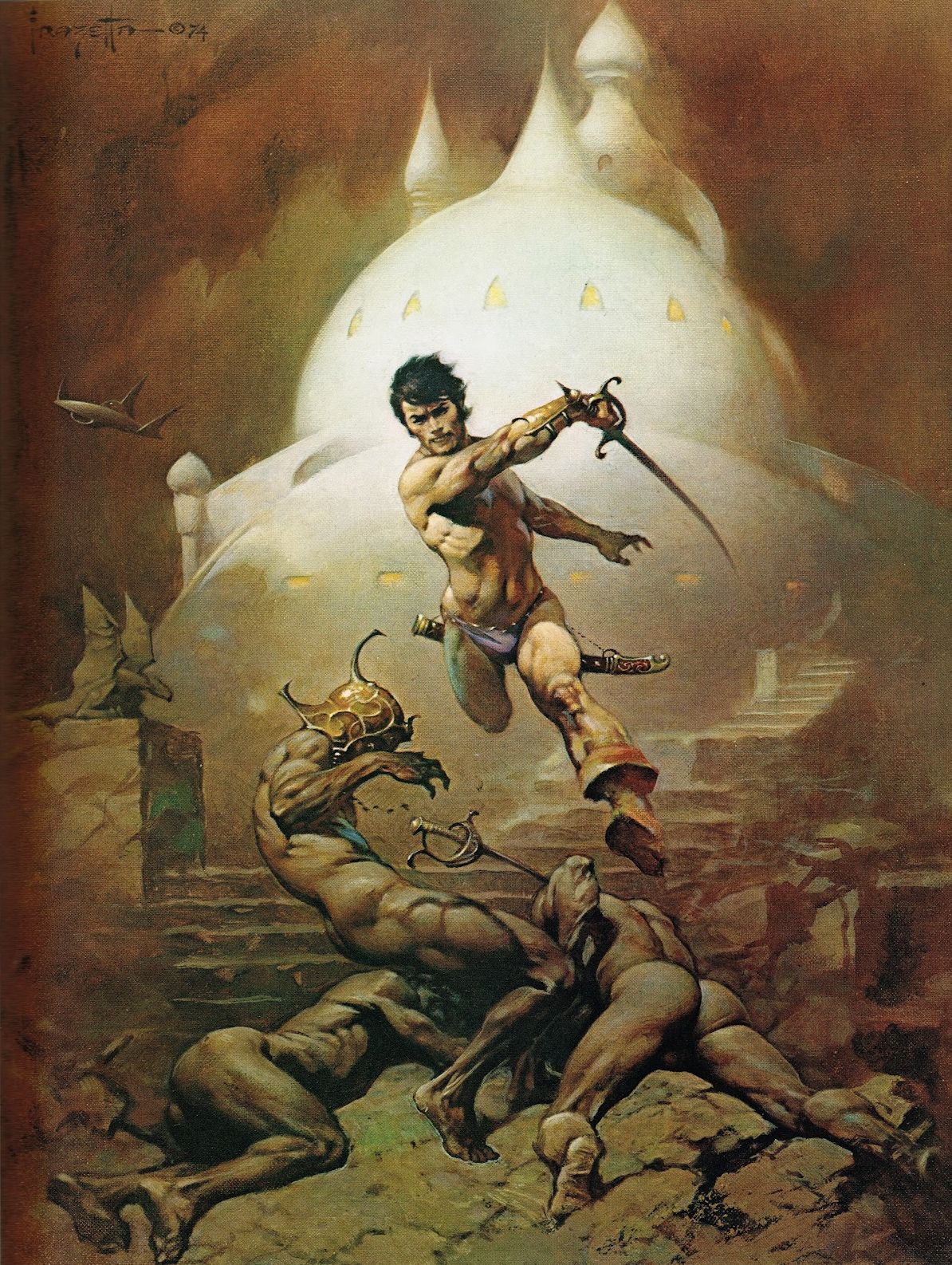 I’ll throw up some inspirational stuff till then. I’ve always been a huge fan of Frank Frazetta’s paintings. I really think his artwork captured the adventure and spirit of Robert E. Howard’s Conan and the John Carter of Mars books from Edgar Rice Burroughs. Both fictional writings I think were far more of an inspiration for D&D than Tolkien ever was. So until next year, enjoy!