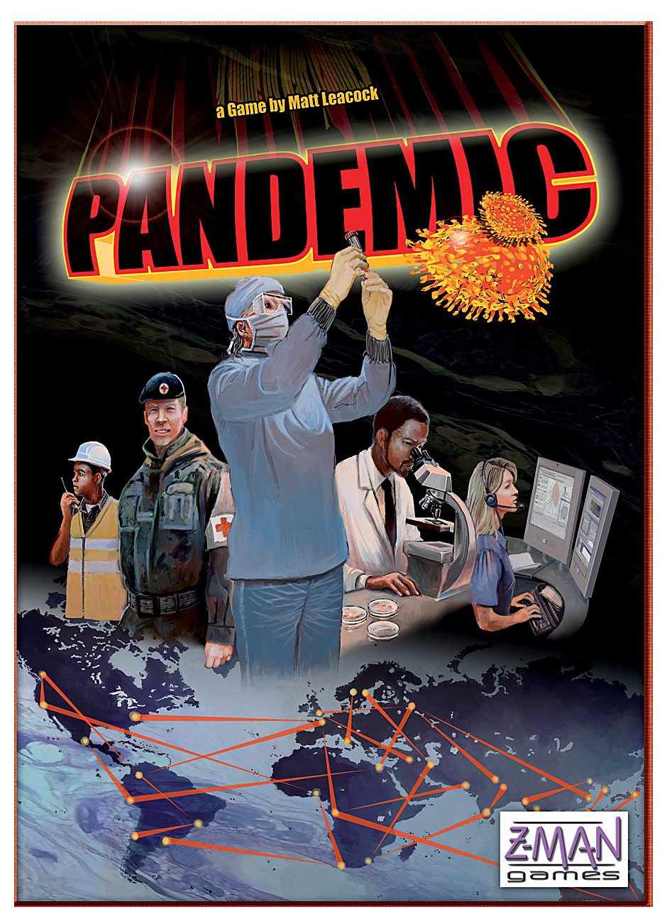 Pandemic is a 2 to 4 player cooperative board game by the folks at Z-man games. Players are CDC-types frantically attempting to keep several epidemics under control as various diseases spread throughout different nations, all the while trying to avoid a massive pandemic. It’s a fun game where everyone teams up to try and beat out the clock of different game resources and conditions.