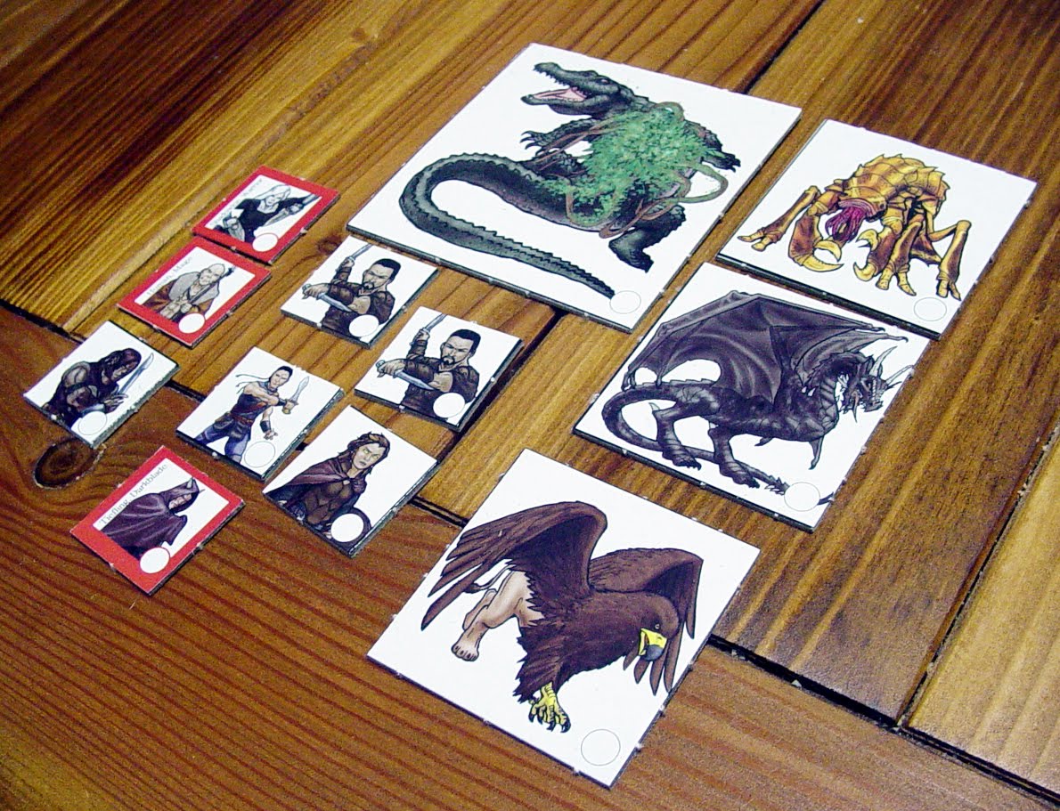 The counters were cut to an appropriate base, 1 inch being for most of them. The stirges were the one exception where I had to trim them with a pair of scissors to their 1/4 inch size. Some of the largest creatures were a beefier 2″ x 2″ counter.