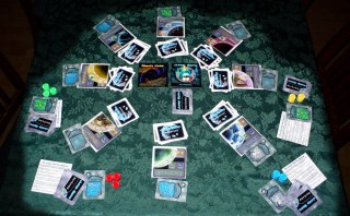 Players travel around different planets moving around in a circle in either direction. Additionally they have a set of navcomp cards. These cards do a lot of game functions. They allow a player to utilize the jump gate and travel to a planet of their choosing. They also allow a player to scan and claim a planet, all of which is done by matching up the symbols and numbers on the planet with the proper navcomp cards. Additionally, many navcomp cards can also allow the player to have special actions (basically allowing them to conduct game actions without paying required navcomp cards).