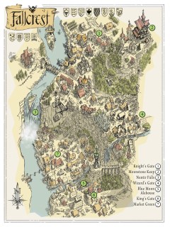 Yeah, Fallcrest has a lot of neat NPCs, locations, and potential stories right within its walls. Not to mention if you dig around you can find a ton of material out there like this wonderful map I lifted from D&D Doodle. Did I mention he even has a DM friendly version?