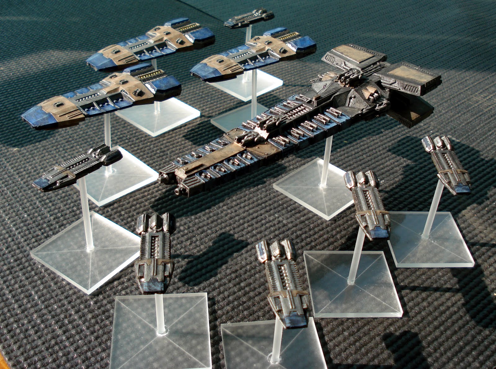For my terran fleet, I went with a 2 color scheme over a metallic base coat. I wanted a little contrast with these models compared to my sorylian fleet (which were effectively different shades of green).