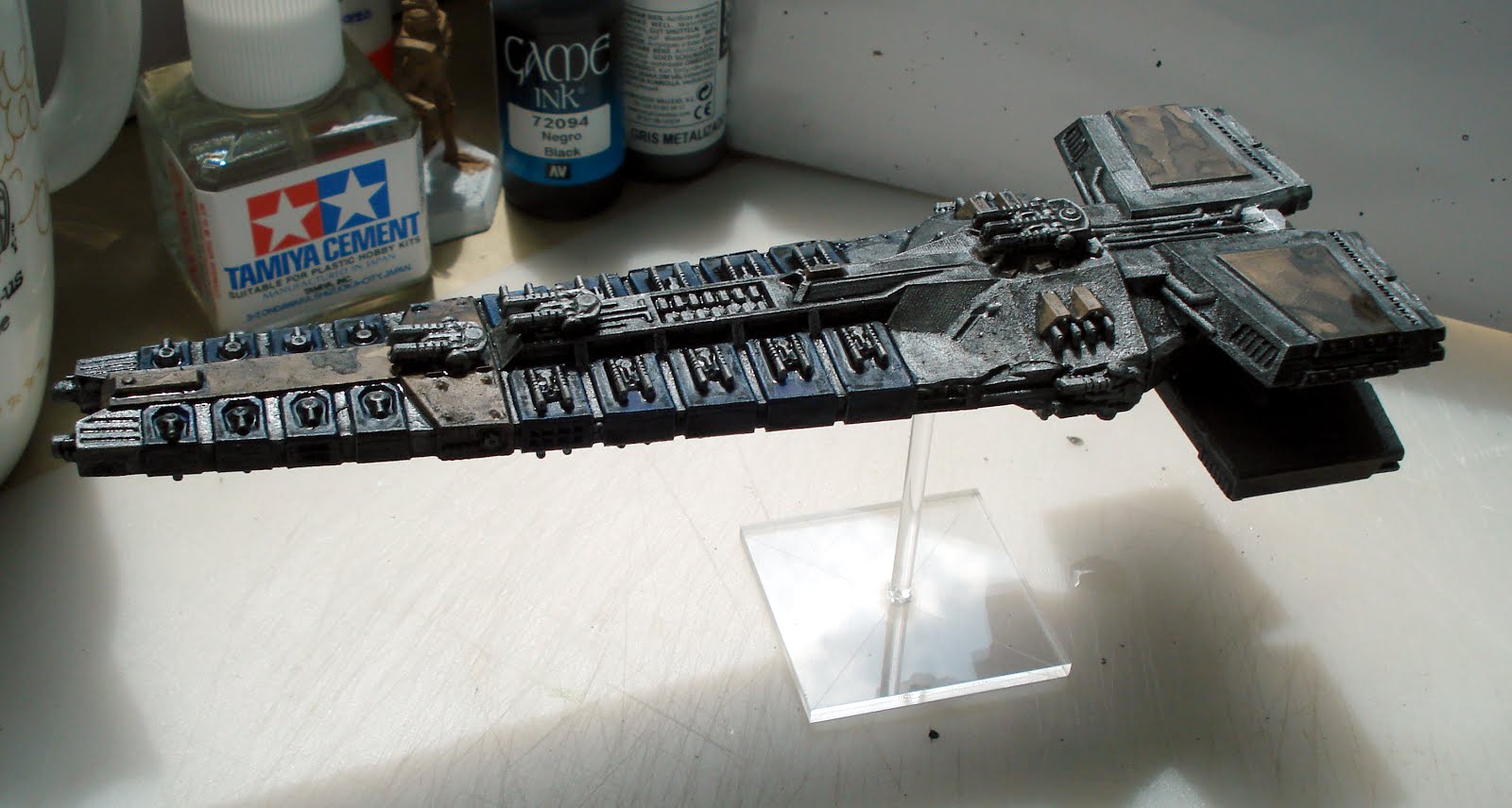 So a long while back I had assembled and primed my terran fleet for Firestorm Armada. It’s been slow going but I got around to completing them and thought I’d post some sequential photos of the battle cruiser as it was painted up.