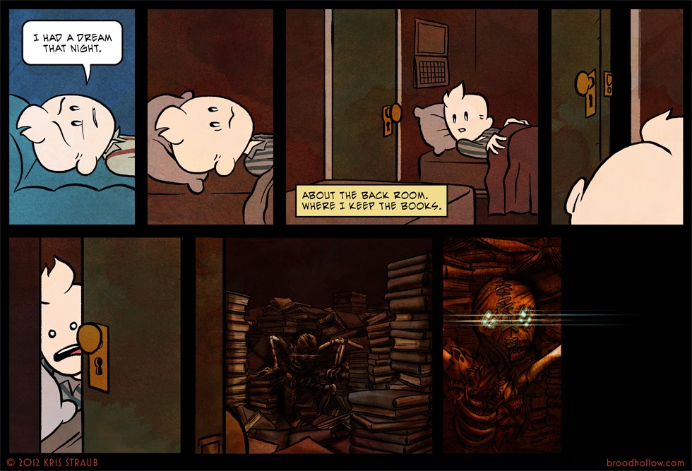 Broodhollow – First up is a wonderful supernatural comic from the same fellow that does Chainsawsuit and the concluded Starslip. Set in the 30s it tells of Wadsworth Zane, a phobia-riddled salesman, that decides to heed the call of managing the affairs of a long lost relative which left him an antique store in their will. The town itself is steeped in odd traditions, unexplained events, and townsfolk seeming oblivious to the strange goings on.