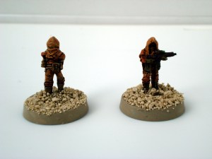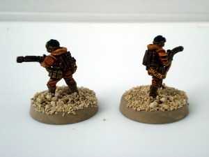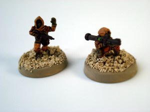 What I like about these sculptures is that they’re based on the Earth Defense models, showing some armor, but have a type of cloak over them. This gives the models a little more flexibility in the type of troops they represent. I can make them a high tech mercenary group, or make them poorly armed insurgents, all depending on the wargame ruleset.