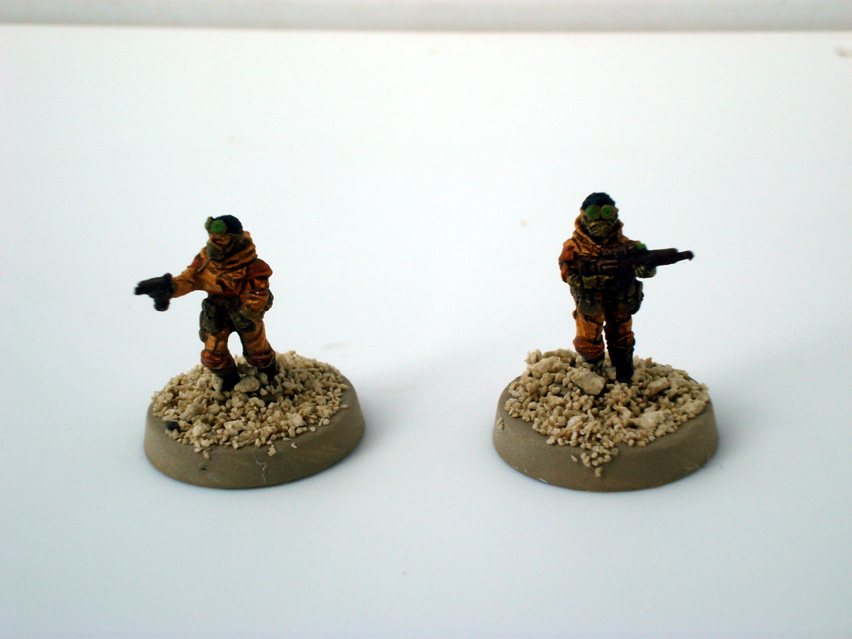 This time I got some other troops from the Sahadeen line. I like them as they make pretty good rebel forces or some type of irregular troops. I might try dabbling with different tech troops and having some models on the lower end of that spectrum would be nice. One thing I’ll admit, I’m still stuck in the mindset of base coats with washes and highlights. I really should try just sticking with emphasizing highlights through drybrushing with bright contrasting colors. The colors on these guys are a little muted with a single wash.