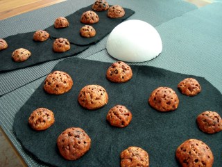 Fortunately, I was able to find an art supply store that had nice supply of styrofoam balls of various sizes. With a bit of compressing and a paint brush handle, I was able to add a bit of texture to the balls once I cut them in half. After quick base coat and wash, I have a nice supply of asteroids to put down on the table.