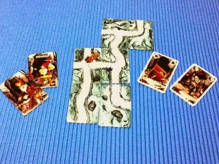 During a player’s turn they have the option of placing a card connecting the current paths, discarding a card, or to play an action card. Afterwards they draw one card. The action cards either hinder another player like breaking a mine cart or smashing a pick, or they repair that specific item. If a player has broken equipment cards in front of them, they can’t play any cards (except action cards to repair any broken cards on them). There are even map cards which allow the player to secretly see which of the 3 end goal cards is actually the treasure.