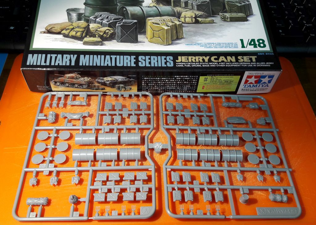 I picked up a 1/48 oil drum and jerry can set from Tamiya to use for modelling the markers. They have a lot of small bits which are well detailed (almost too much so for my purposes). A bonus is it also includes stowage for axis and allied vehicles which I’ll likely use on other kits. All in all, a decent spread of stuff to add to terrain and vehicles.