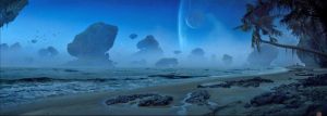 A lovely vista of an alien beach. Exploring an unknown world, crash landed in untamed wilds, or are they taking in the sights before undertaking a mission on a remote outpost? Link.