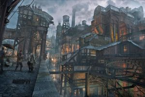 A warren of thieves, beggars, whores, urchins, and cutthroats, the Soot is a quarter of the Imperial city one should avoid. Named for the choking foul air from the smokestacks of ever-burning wood and coal, it’s a haven for rogues and assassins. However it’s also the perfect place for those seeking unsavory work, ill gotten goods, or a place of refuge from the law. Link.