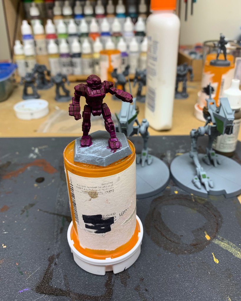 However I still wasn’t quite happy with the depth of color for the models as you can see with these battle mechs I worked on. I will freely admit though that it could have been the particular GW contrast paints I was using. Maybe thinning it out more would have worked better.