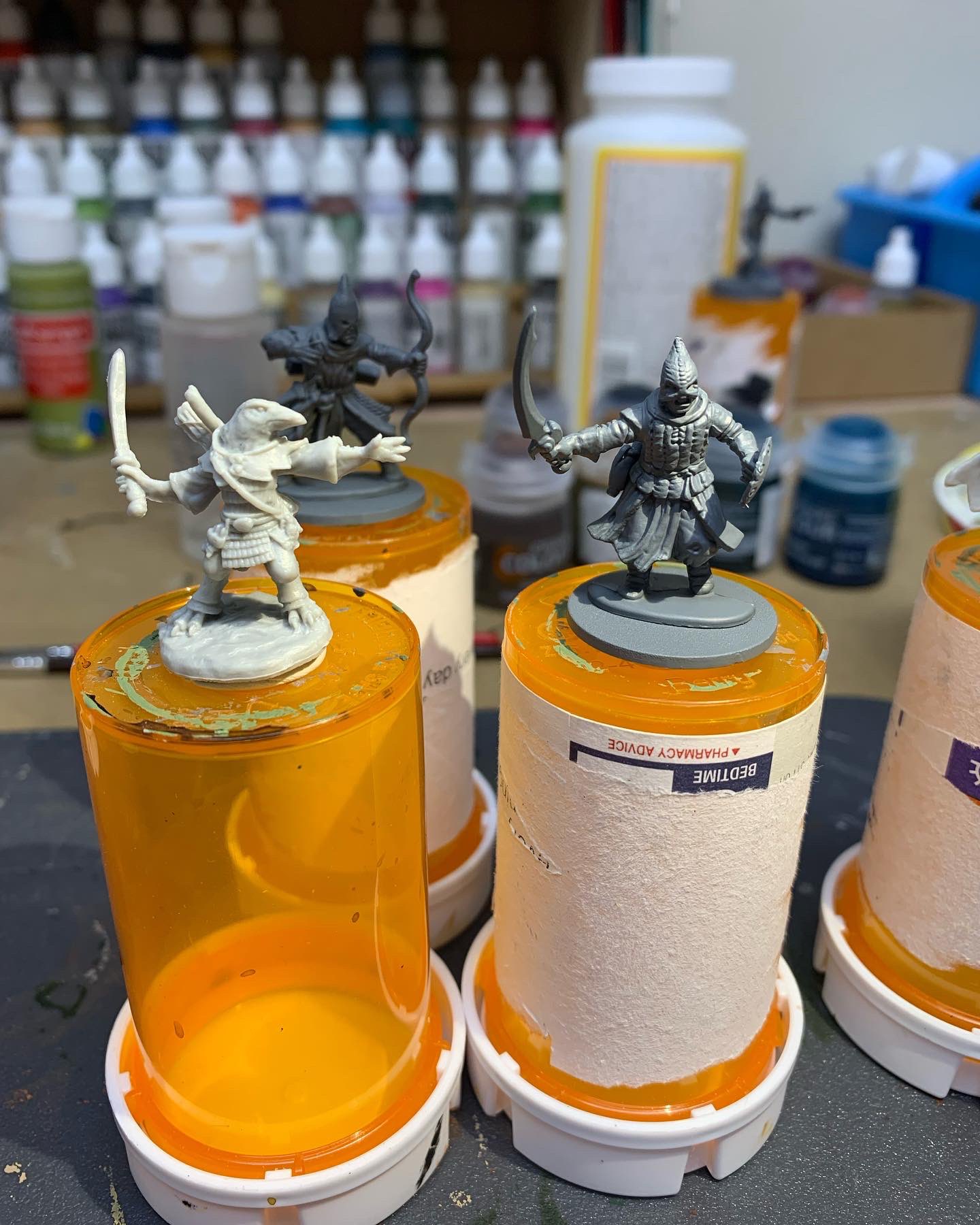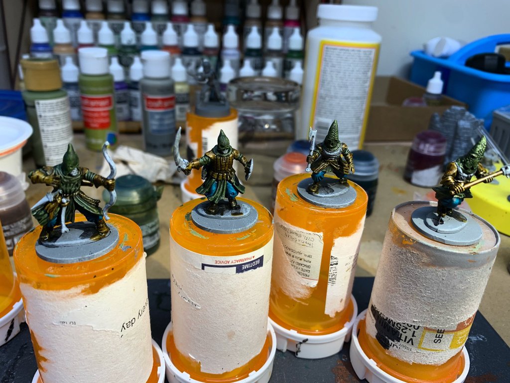 If you paint in spurts (I’m a huge fan of the 15 minute paint day) or mix colors a lot, you may seriously want to consider investing in a wet palette. It’s actually a pretty easy thing to make yourself with parchment paper. The advantage of wet palettes is those mixed colors can be used for longer periods of time, getting more consistency over several models. This is especially useful if you are working in short bursts of painting activity. By not having to constantly clean your work palette, you can easily get back into continuing a project.
