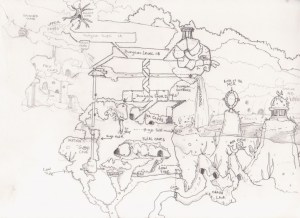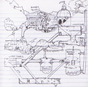 I’ve been liking this so much I’ve thrown out the idea of mapping out hallways. Just leaving things as a rough networked sketch has been great. It’s made it mentally easier for me to keep rooms dynamic and eased the ability of switching things around on the fly. Even better, when I see inspiring stuff like the maps here I’m more likely to use it and not worry about keeping in the corridors.