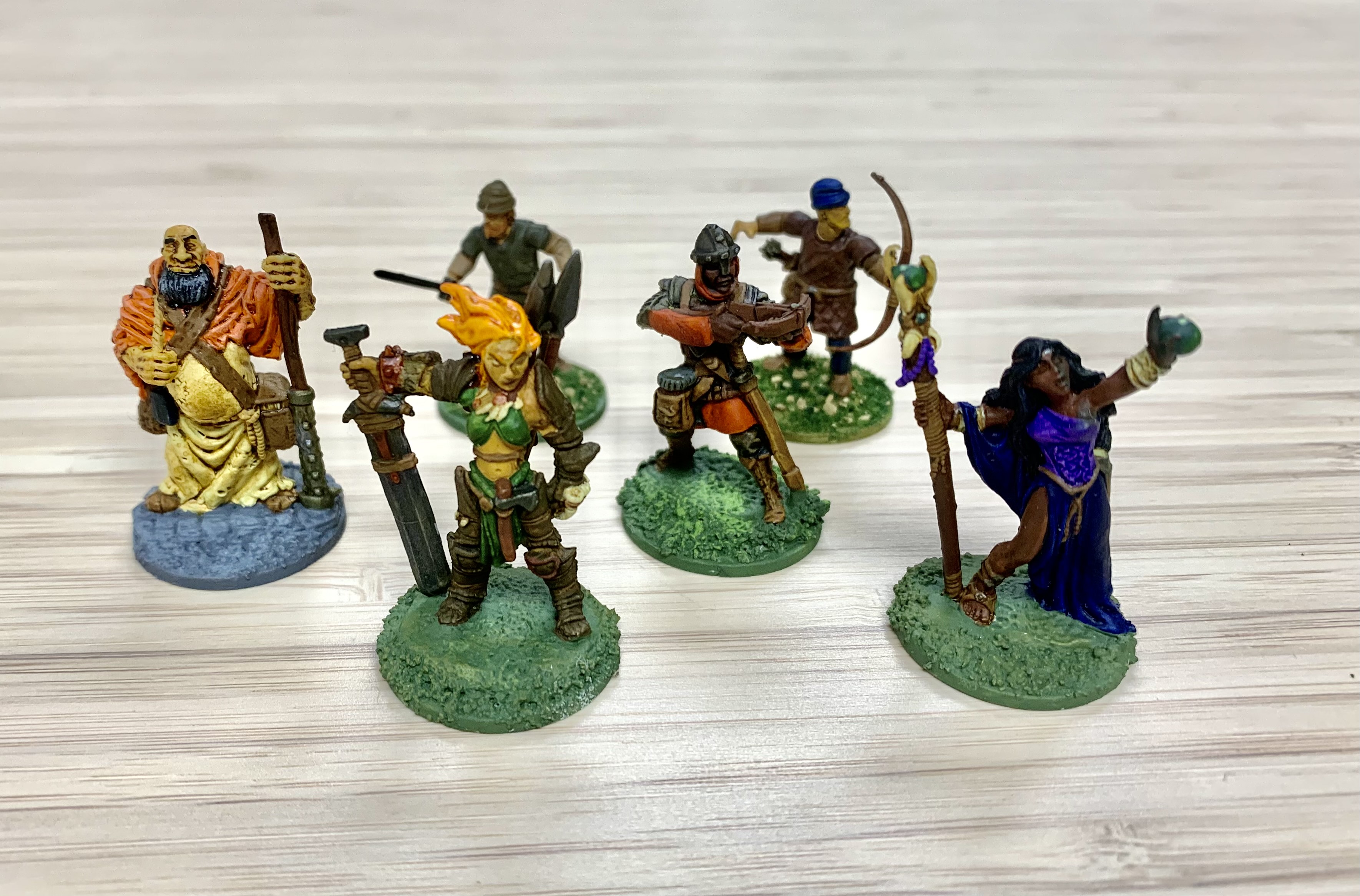 For gear, I was able to wrangle up a few quality weapons and some simple enchanted items. I loved the idea of a rough and tumble barbarian with just enough charisma to gather a group under their leadership. So I chose Takari to be my warband leader wielding a bastard sword. I definitely wanted some ranged attackers and selected Kester, a tradesman-turned-adventurer, who opted to finally wield the crossbows he diligently made for years in the city. There was also Sigmund, the zealot monk on a mission to drive evil from the land. And lastly, Matilda, the strange mystic from the south was willing to join the company (although no one knows if it is to rid scourge from the region or for her own arcane purposes). To round out the warband, I had two additional human followers. Den, a simple man-at-arms henchman and Nip, an adept bowman, that were both willing to join the group.