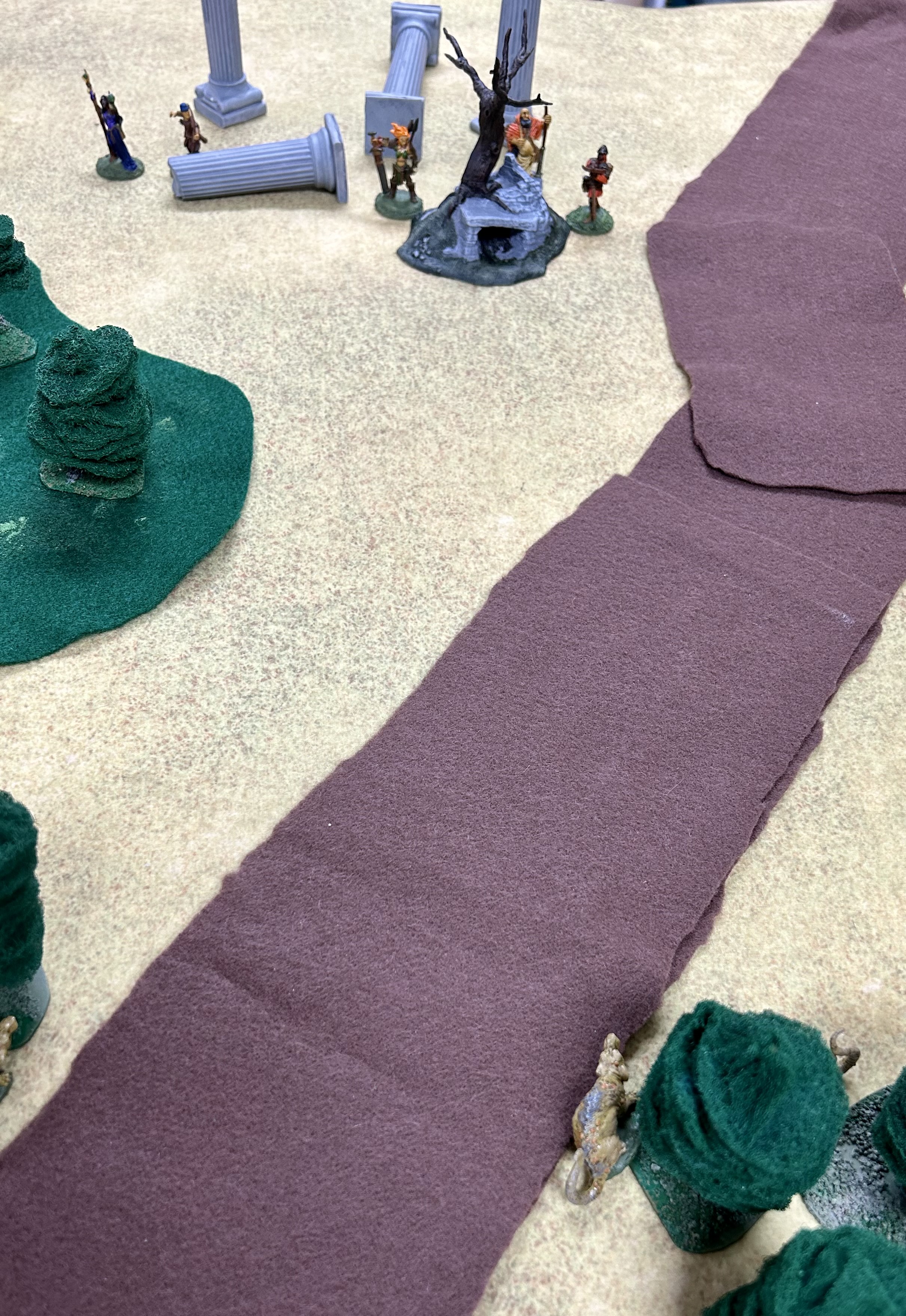 I sketched out some locations and added a few camps for the different threats. While not written on the map, I ended up having a marsh near the Downs and a towering mountain on the King’s Road East as unexplored locations. There is still plenty of unnamed wilderness to fill in as the campaign goes along. I also ended up with another unexplored location of note, the Sword Barrows. A likely delve to adventure in soon.