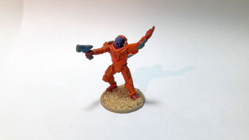 I went with a super simple painting scheme. I’m still not too keen on it and likely will retouch the chest pieces some. I’m using a stark highlight of orange over base coat like what I used for my Russians, but even after drybrushing it doesn’t seem to pop much. It’s a very subtle effect which doesn’t photograph well (using a crappy phone camera doesn’t help much either).
