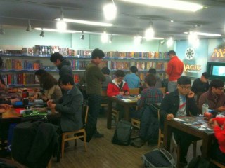 The place is pretty hopping the weekends I’ve visited. It looks like Magic has a fairly fervent following with several tables filled with players. With a small shelf of snacks and a bathroom on the facilities, you can say they take gaming in store pretty seriously. Unfortunately for non-Koreans, it seems regional language is the norm for the decks I saw, but there were a few ex-pats having some games (and I expect with the right app, you could get a language translation of cards if needed in a pinch).