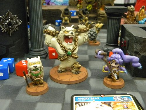 The Good – The models are nice and painted up I think would be gorgeous. The theme is light and playful. I think the mechanics move well and the game captures that feel of a frantic battle game, with hordes of minions being cut through until everyone has to gang up on the final boss creature. All the while, there are nuances to most of the models (both hero and monsters) with enough abilities and powers to keep things interesting. It also feels pretty balanced, so each player can give it their all and no one side has to pull any punches.