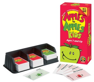 Apples to Apples Kids – The adult version is a hoot and an excellent party game, but I got tired of trying to describe who Maryln Monroe or Dr. Jack Kevorkian was. The Kid edition is a great fit. Players try to secretly match adjective cards in their hand with a specific noun. Rotating as a judge, a player will pick which one seems to be the best fit. If your card is picked you score a point. Another simple game that is fast moving. The only downside is you need at least 3 players, with more definitely making a better game.