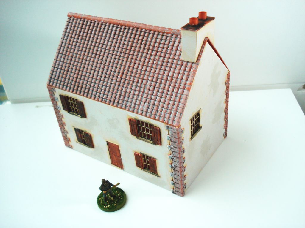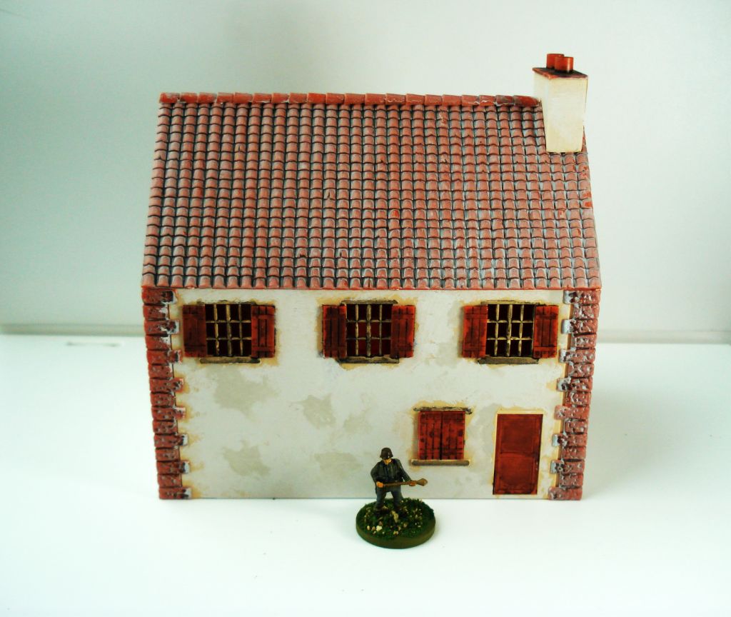 Looking around for some options, I ended up buying a tile roofed, 1/72 farm house from Armourfast. The kit is very nice if a little pricey at $14.50 USD. The model comes with varying colors so that you could literally assemble and play without the fuss of painting. I somewhat embraced this and opted to give the model a very basic one-over with some washes and drybrushing.