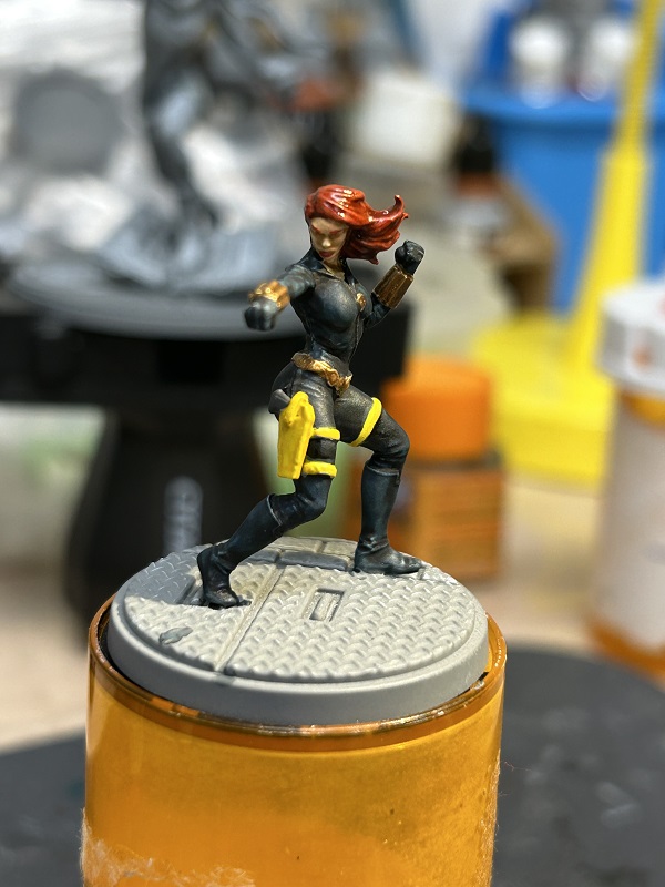 Continuing my painting exploits, I’m just about done with the core set and moving on to some other models. Yet, I’ve still got a few Avengers on the bench and Black Widow was next in the queue. As with much of my other models, I’ve really come to embrace Vallejo Xpress contrasts and started off giving her 2 coats of Black Lotus Xpress for a really dark jumpsuit look as one coat just didn’t seem to get as dark as I wanted (pic is with one coat).
