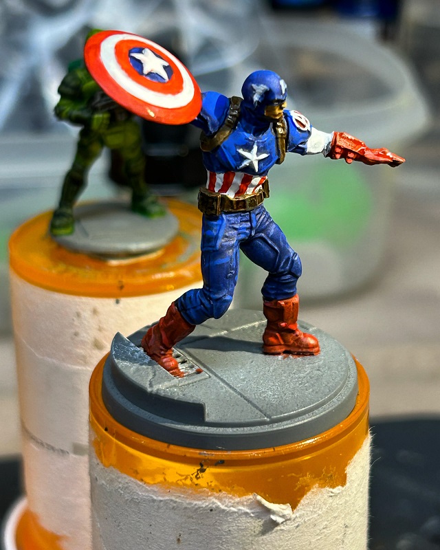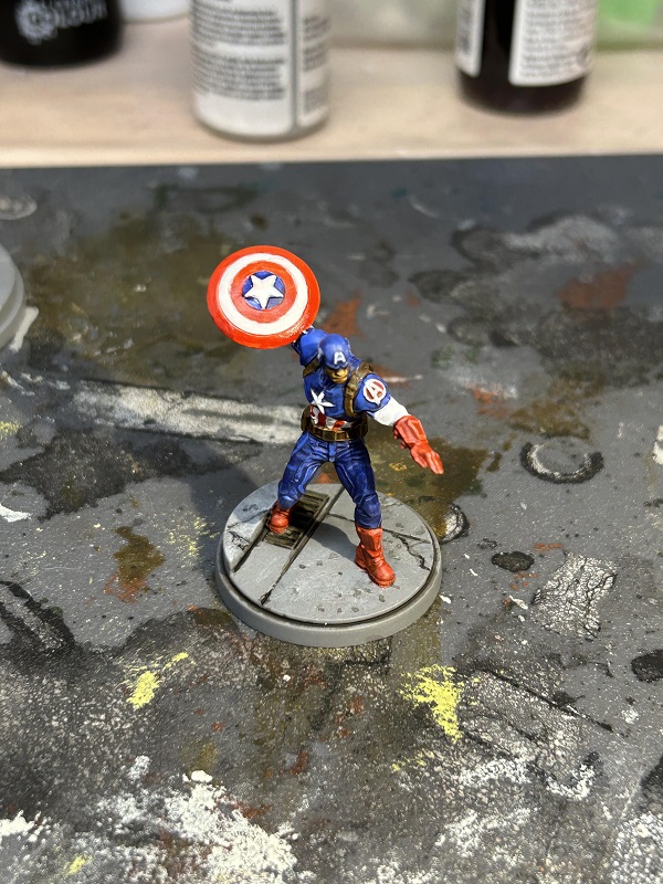 A little attention to the base and a final gloss varnish was applied to the shield to give it a slight reflective shine. Good enough for the tabletop. Might move onto Ms. Marvel next.