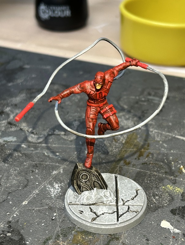 The final result isn’t going to win any painting awards. It’s a pretty slapdash job. But oddly I think it just works for Daredevil. Despite the name, he never felt a flashy character and the muted, basic look to me fits with him being a street level hero, keeping Hell’s Kitchen safe. Good enough for the tabletop I think.